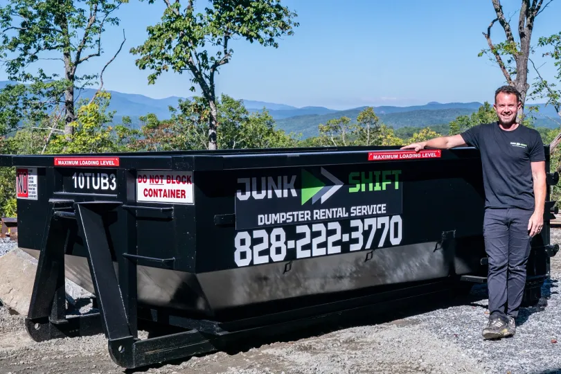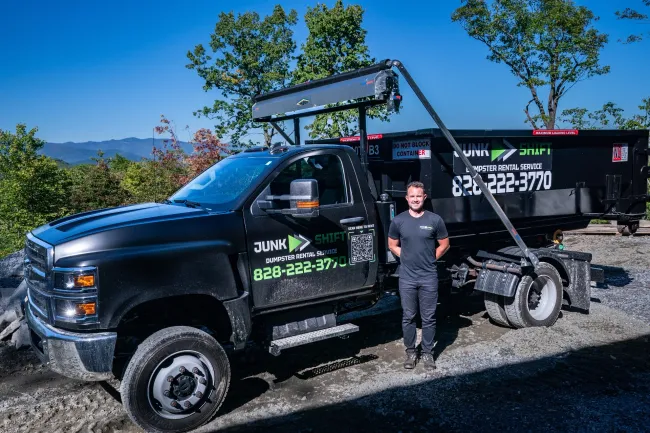 Need a dumpster in Asheville, Brevard, Mills River, Fletcher, or anywhere within 30 miles of Pisgah Forest? Junk Shift delivers the bin fast, places it where you need it, and makes cleanup simple.